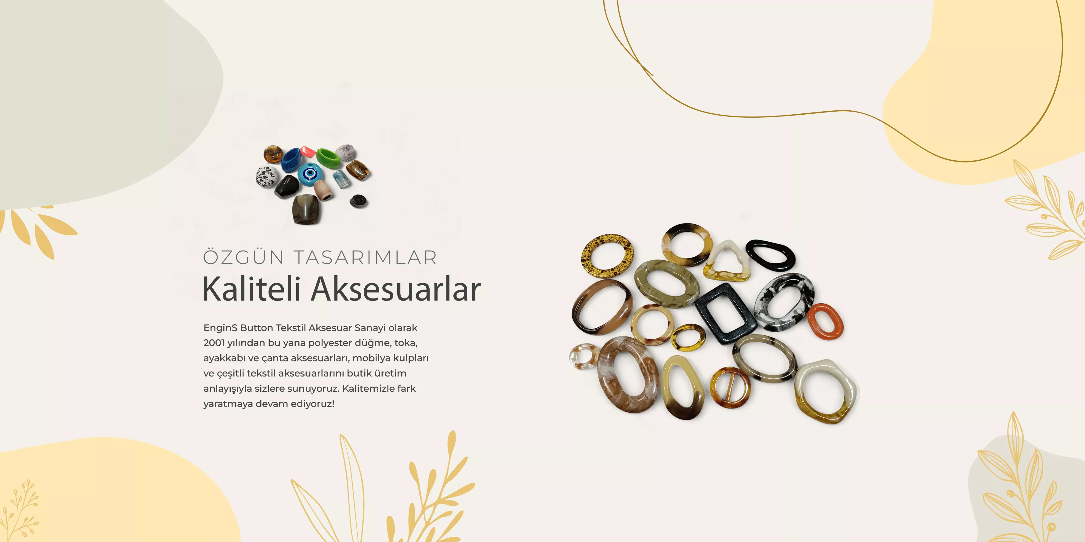 EnginS Button Tekstil Aksesuar Şirketi olarak, 20 yılı aşkın süredir sektördeki yolculuğumuzu gururla sürdürüyoruz. Her bir tasarımımızda, özenle seçilmiş boncuklar, boncuk kombinleri düğmeler, toka kombinleri ve özel ürün kombinleri ile zarif ve özgün aksesuarlar yaratıyoruz. Tasarıma olan tu ...